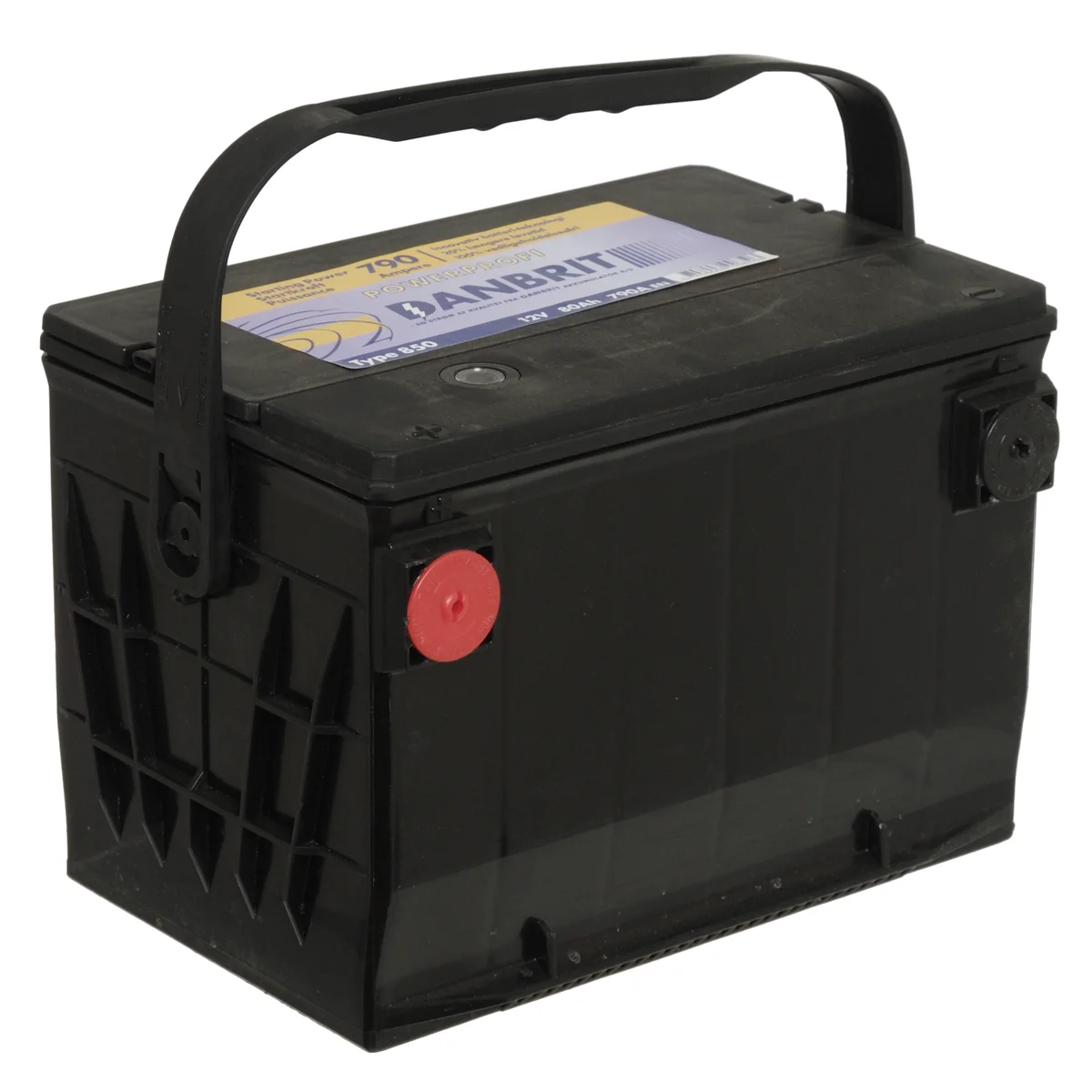 Battery Danbrit USA pole 80Ah 12V, 80Ah, CCA/EN 790A, Pole type 4, Starter battery L257 x B175 x H180mm. 18.5kg Side poles (USA) B07. Danbrit 850. Shipping surcharge applies for bulky goods, Sold only to companies!