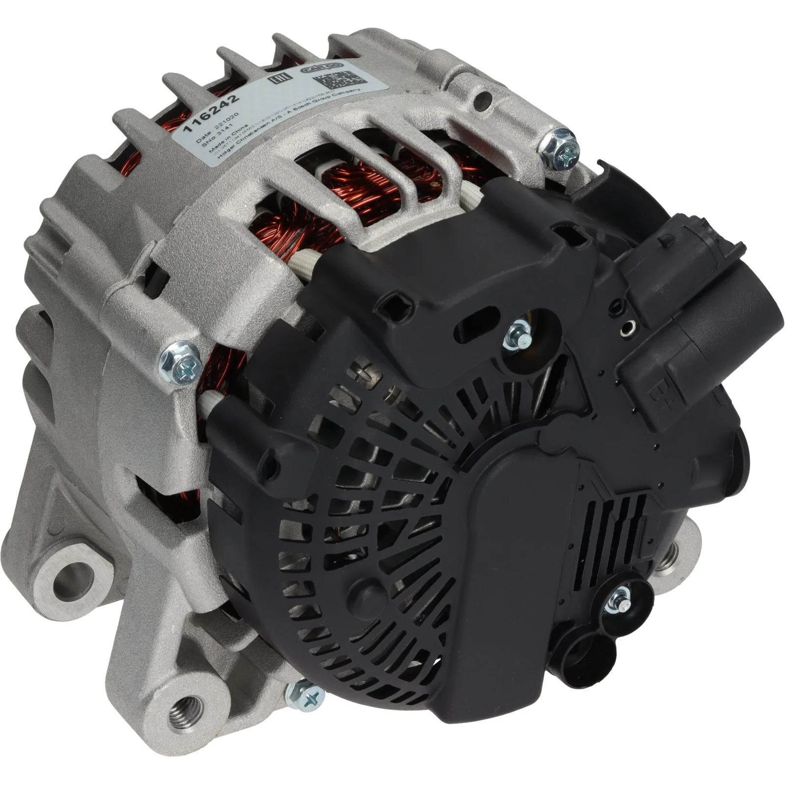 Voltage: 14 Amp: 180 Pulley distributor: 42.50 Width/holder arm: 21.00 Mounting bracket distributor: 45.50 Bracket hole: 10.00 Belt adjustment bracket hole position: 47 Belt adjustment bracket hole 1: 10.50 Pulley diameter: 54.00 Grooves/pulley: 6 Radius: 90.00 Radius 2: 90.00 B+: M8 Position/B+ in min.: 2 Rotation: CW Plug no.: PL132 Total length mm: 186.00 Terminal type: COM ID Code: 41 Communication: LIN Pulley: SP/FW Fan: IF Regulator type: IR Remarks: This Alternator has a COM terminal on the regulator. It is recommended that the OEM number is used to check suitability before ordering.
